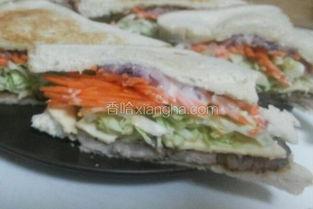 3. 黄瓜猪扒三明治:在猪扒中加入黄瓜,口感更加清爽,黄瓜的清脆与猪扒的鲜嫩相互搭配。